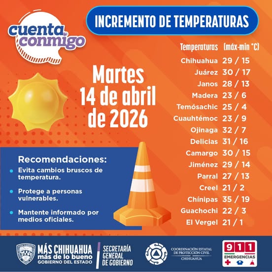 Se esperan ráfagas de hasta 65 kilómetros por hora, lo que podría generar tolvaneras severas y reducir la visibilidad, principalmente en carreteras como Chihuahua–Juárez, Juárez–Ascensión y Sueco–Janos.
