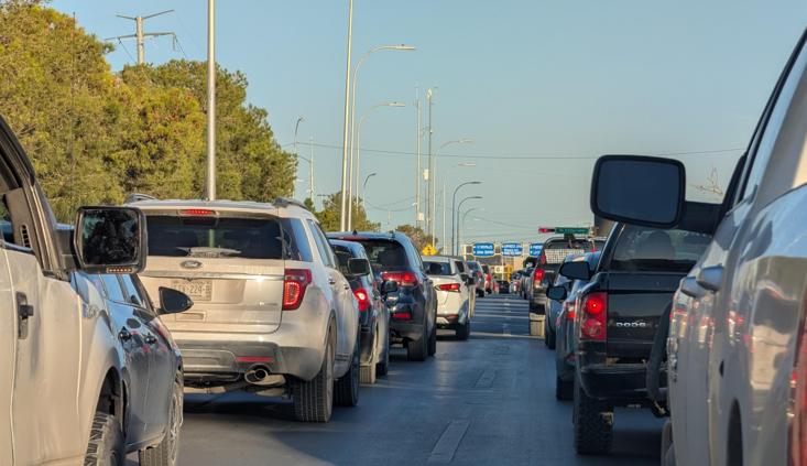 Aparte, la ciudad está “encerrada” por el río Bravo al norte. Esto genera que miles de personas se muevan masivamente de sur a norte por la mañana –hacia puentes internacionales y zonas industriales– y de norte a sur por la tarde. Este flujo unidireccional satura los carriles en un solo sentido, dejando la capacidad del sentido opuesto subutilizada.