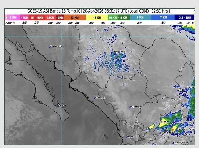 - Viento de 20 a 30 km/h con rachas de 40 a 60 km/h: Chihuahua, Coahuila, Durango y Zacatecas.