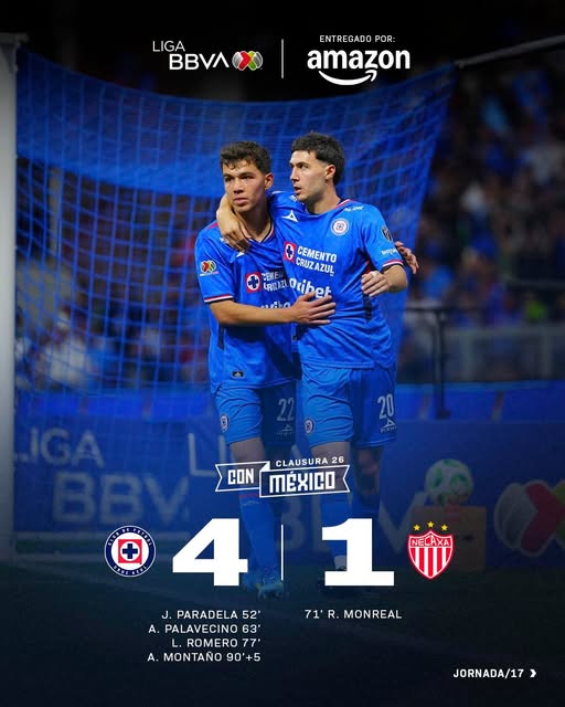 El desahogo finalmente llegó para Cruz Azul. Tras 47 días sin conocer la victoria, el equipo dirigido por Joel Huiqui rompió la mala racha con un contundente 4-1 sobre Necaxa en el Estadio Banorte.