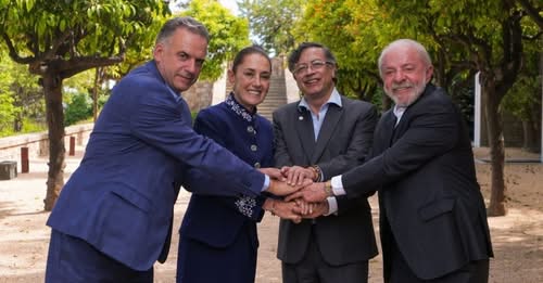 A través de redes sociales, la institución política de derecha difundió una imagen de los presidentes Claudia Sheinbaum, Gustavo Petro y Luiz Inácio Lula da Silva, con la frase mencionada.