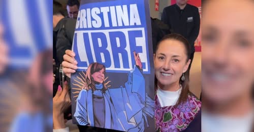 La presidenta Claudia Sheinbaum Pardo mostró su respaldo desde Barcelona a la exmandataria de Argentina, Cristina Fernández de Kirchner (2007-2015), quien cumple una condena de seis años bajo prisión domiciliaria.