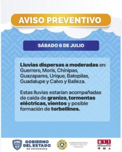 Las precipitaciones estarían acompañadas de granizo y tormentas eléctricas La Coordinación Estatal de Protección...